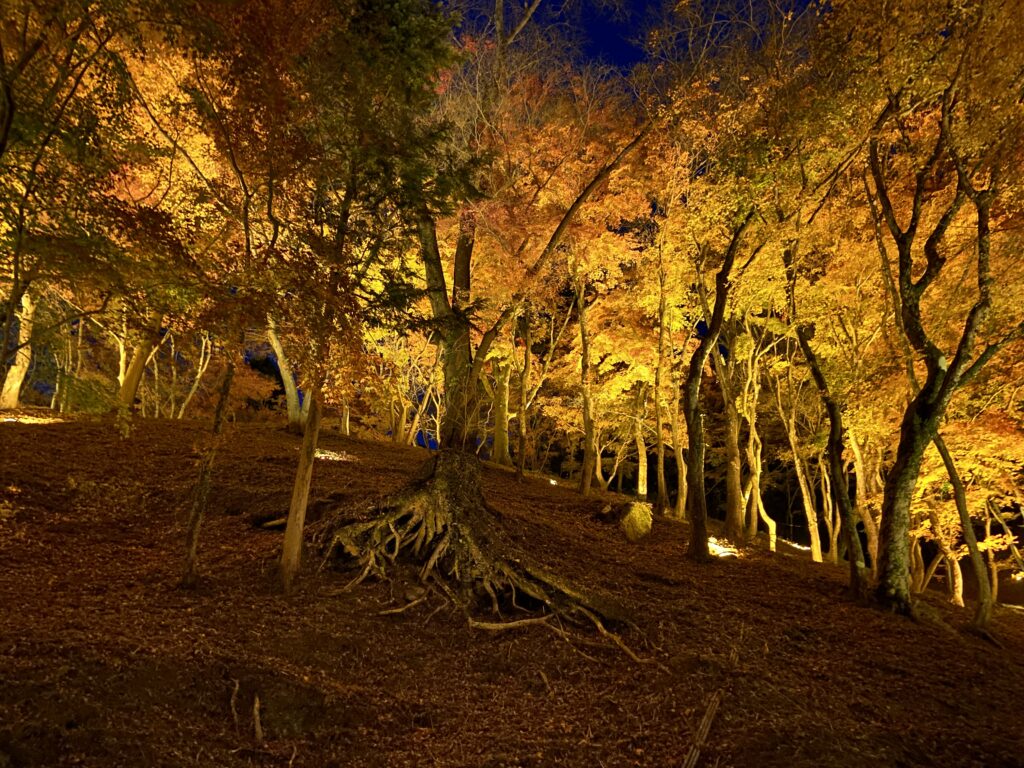 混雑はあるけれど、一度は見てほしい“日本有数の夜もみじ”スポットです。