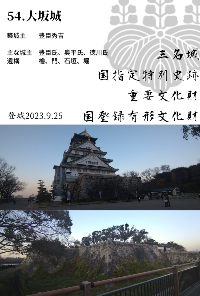また、日本100名城スタンプは 大阪城天守閣内に設置されています。