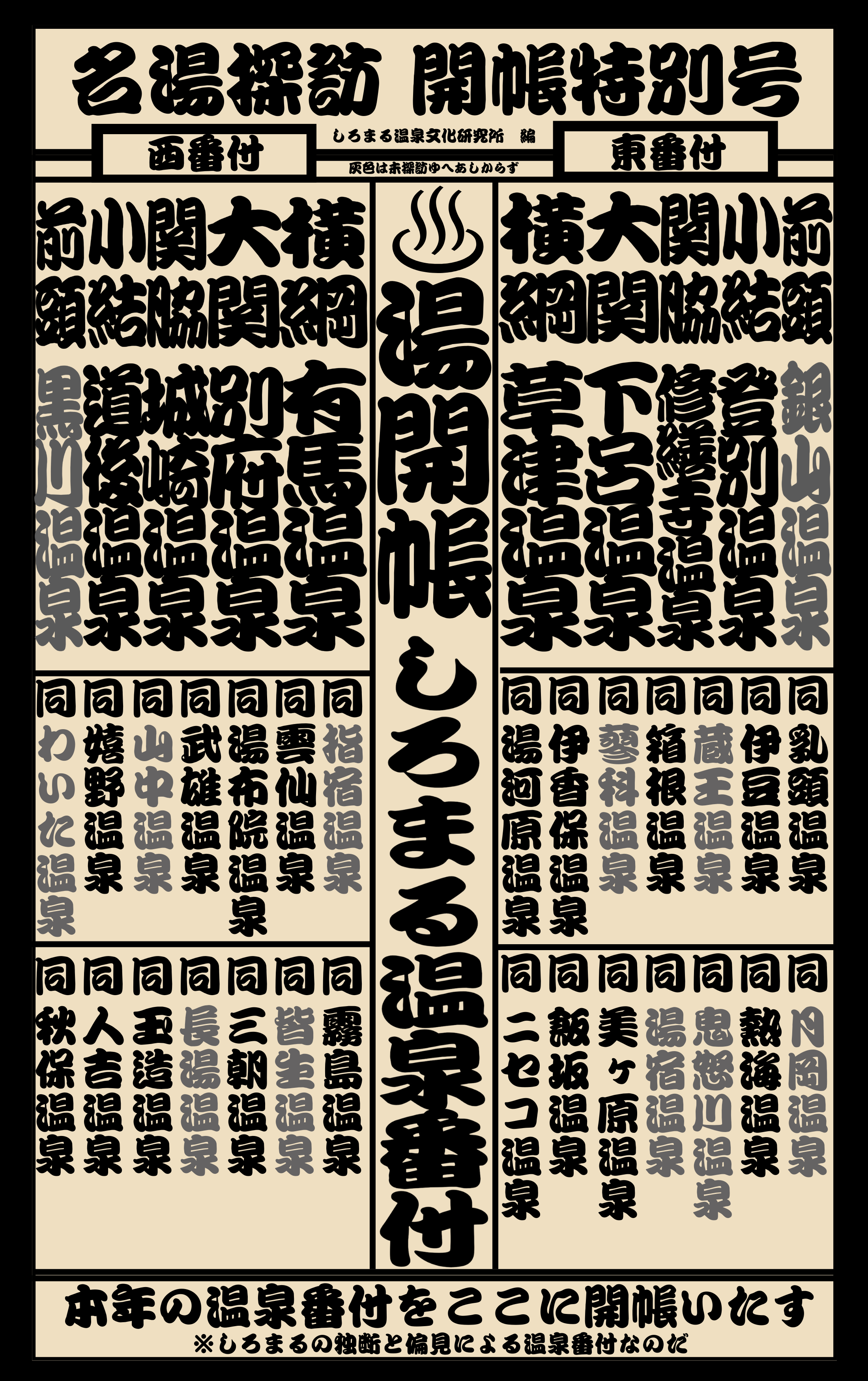 しろまる温泉番付ベスト10(東西横綱〜前頭)