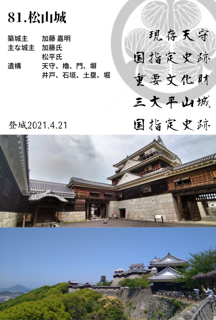 松山城は、市街地の中心にそびえる現存天守を持つ城です。