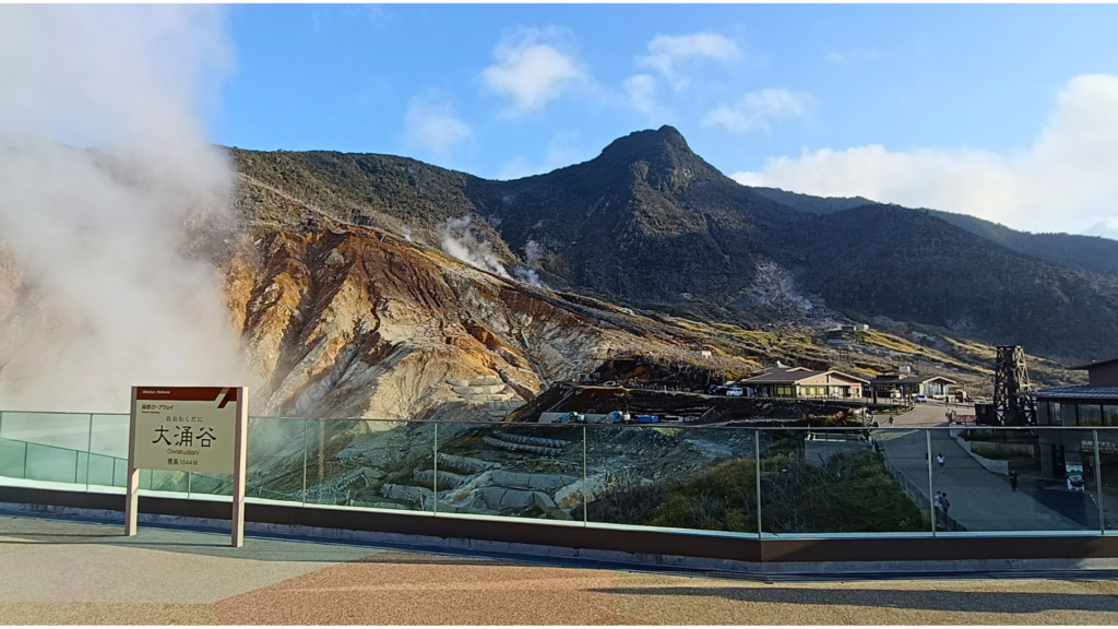 大涌谷駅で下車後、展望エリア → 黒たまご売店 → 写真撮影という流れが、 初めてでも分かりやすい回り方になります。