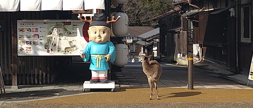 鹿が多いため、紙袋や地図を手に持ったまま歩く際は注意が必要です。