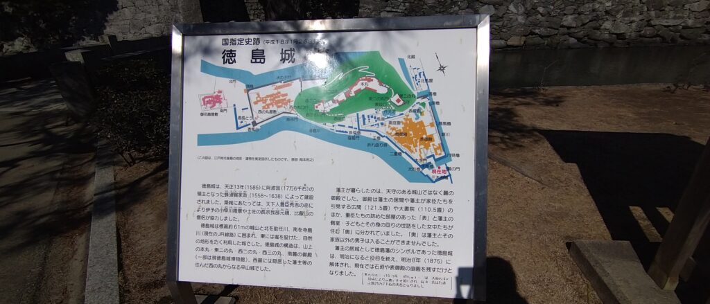 一般的な見学ルートは、 徳島中央公園側から城山へ向かう流れです。