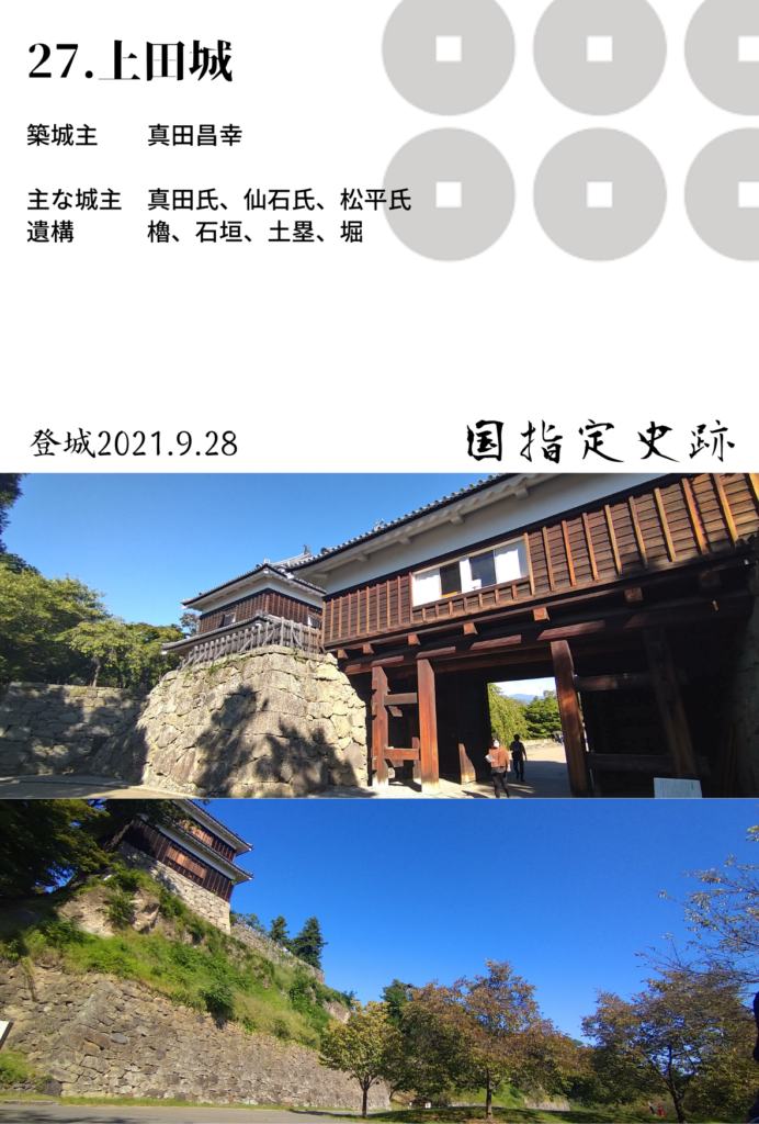 【御城印購入場所】 上田城櫓門前売店(観光案内所付近) ※販売場所は時期・イベントにより変更される場合あり 【日本100名城スタンプ設置場所】 上田城観光案内所(櫓門付近)