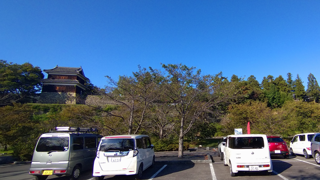 最寄りで使われるのは、城跡公園に隣接する駐車場です。 徒歩移動が短く、城見学には最も便利です。